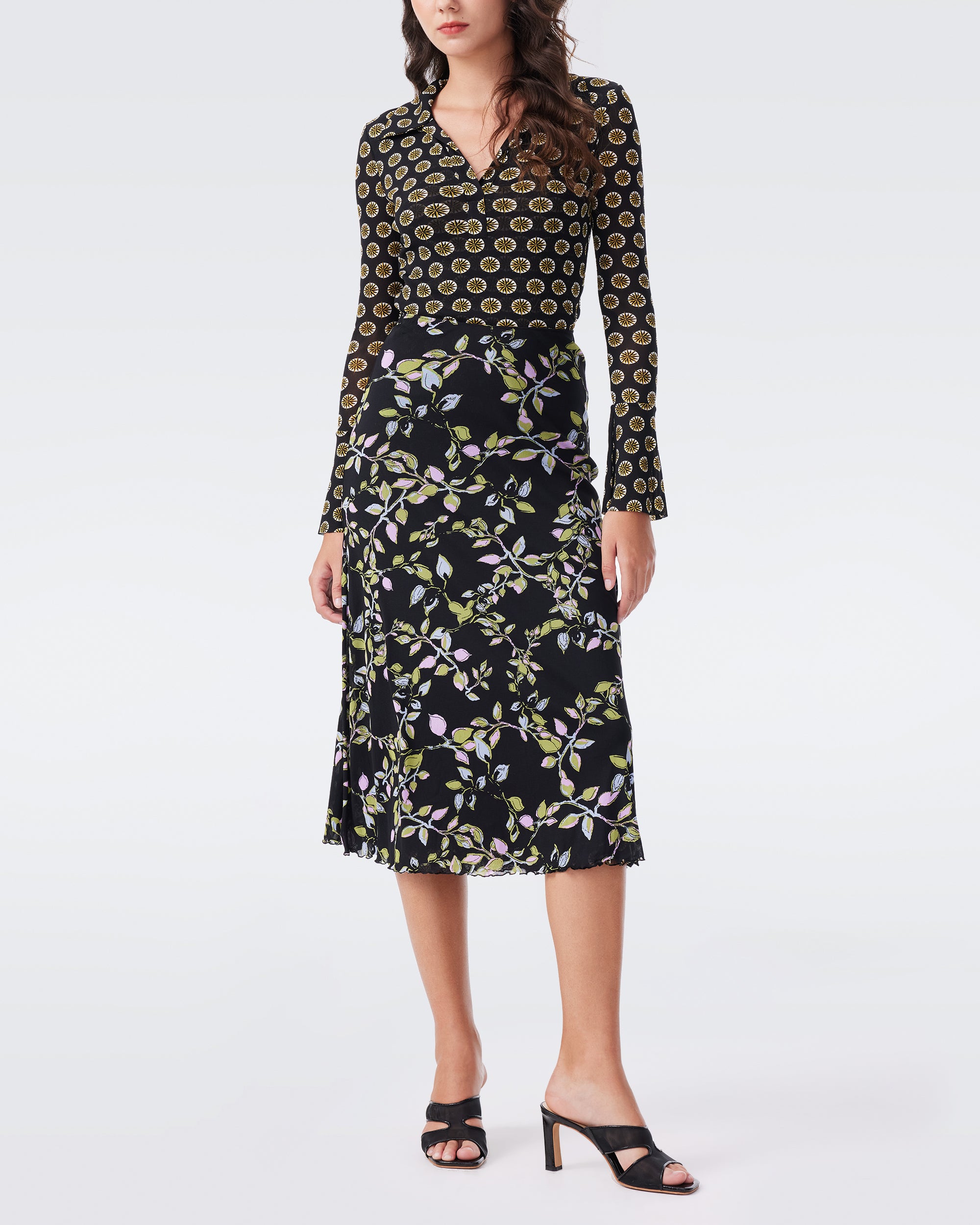 This midi skirt has an A-line hem,it shows elegance well and matches all kinds of tops.Made of reversible stretch mesh, it’s light, stretchy and can be worn on both sides. It’s comfortable, skin-friendly and breathable. With prints on both sides, one skirt gives two different looks.