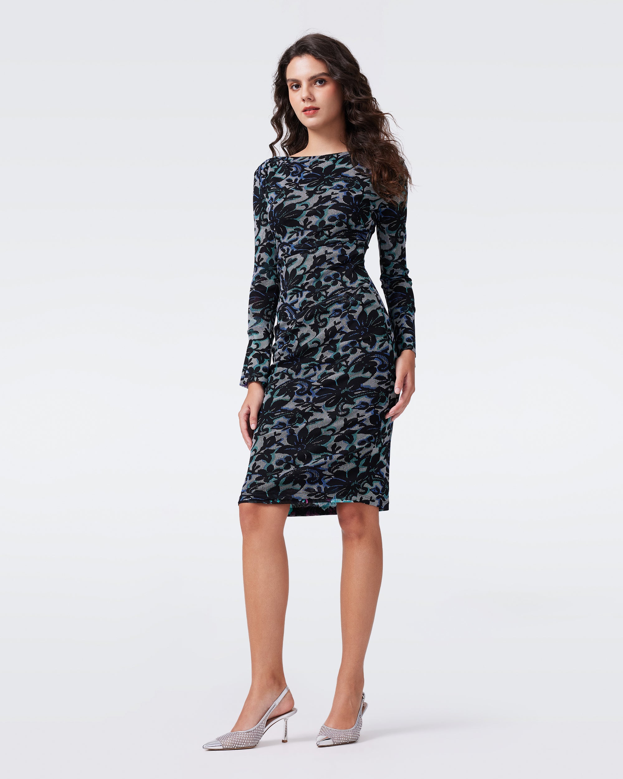 This dress has double-sided prints, a simple and elegant crew neck, and long sleeves that match its midi-length bodycon hem, accurately outlining the graceful body curves. Made of reversible mesh fabric, which feels smooth and has excellent stretch. It not only fits the body naturally to enhance curvy beauty, but also ensures comfort and ease when wearing.