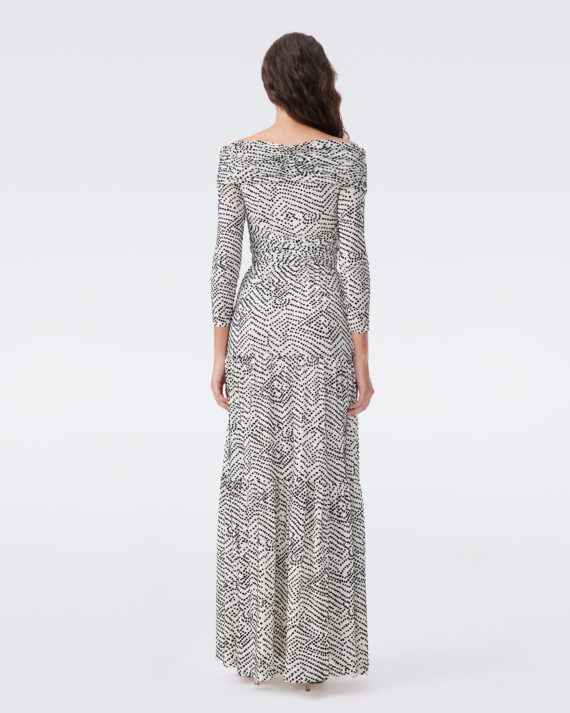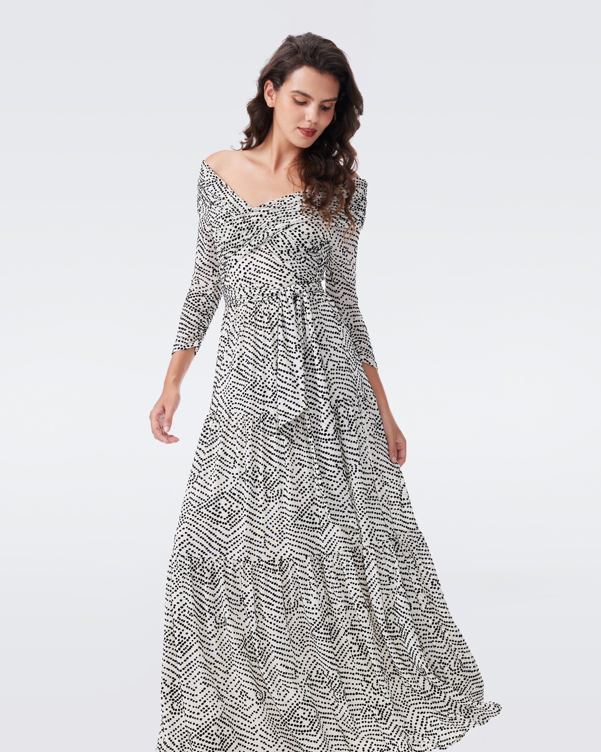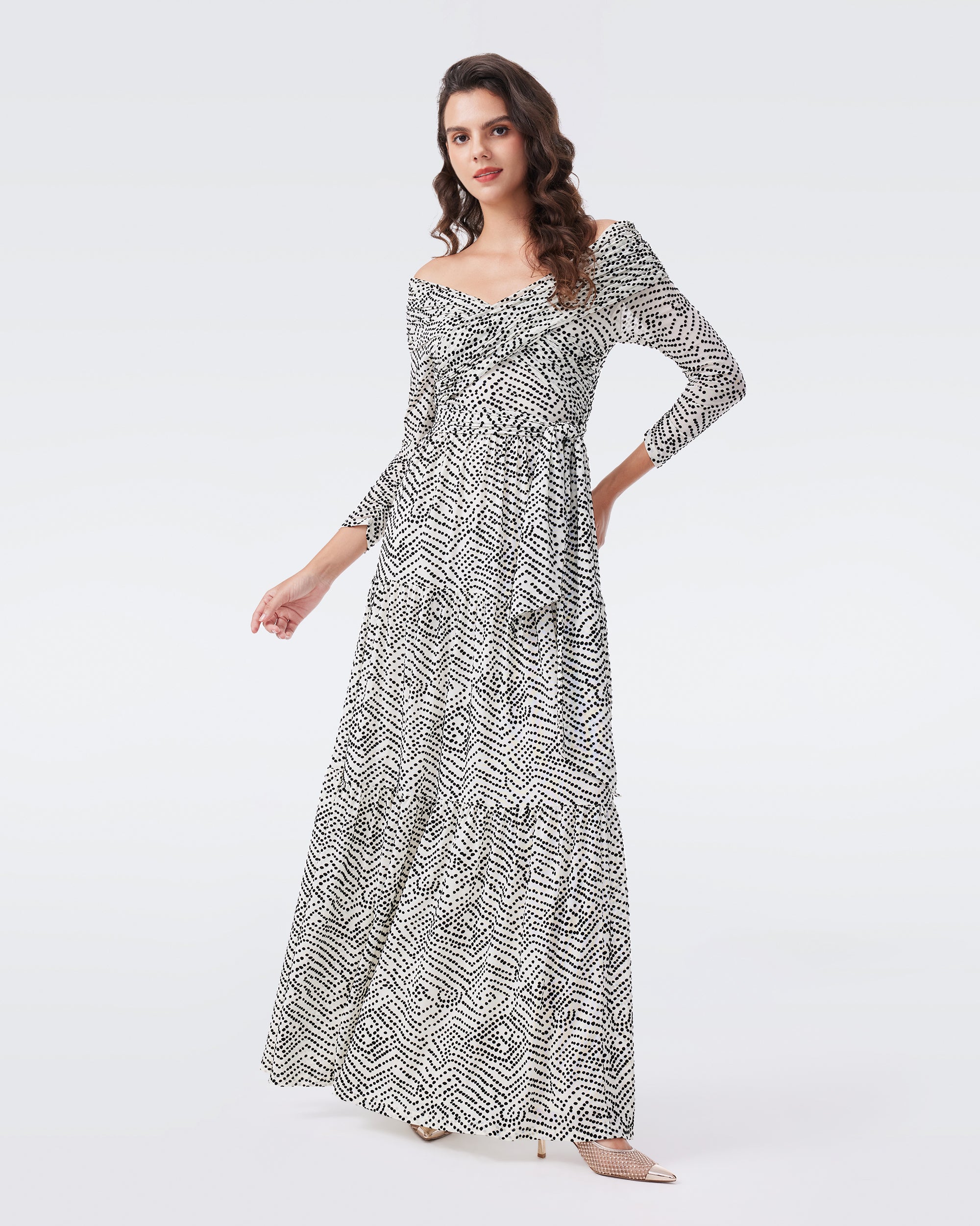 This dress features an off-the-shoulder long-length design with long sleeves that flatter the arm lines. Its layered skirt detail makes it suitable for various occasions such as dates and parties. Made of flocked mesh fabric, which feels smooth and has excellent stretch. It not only fits the body naturally to enhance curvy beauty, but also ensures comfort and ease when wearing.