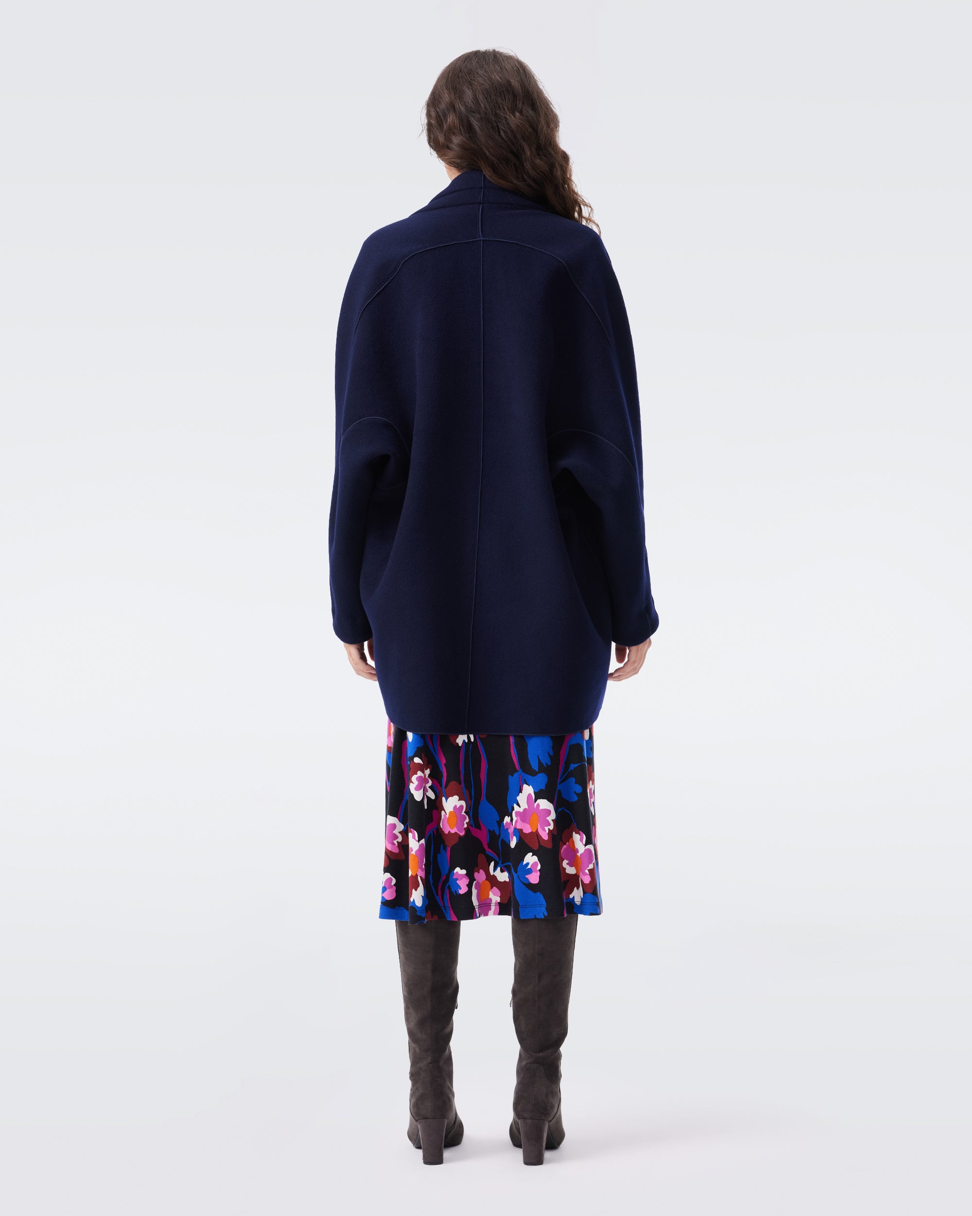 Made of high quality wool fabric, soft, warm, smooth, and drapes naturally. Deep navy blue, elegant and versatile. Loose short cardigan coat fit, dropped shoulders for a lazy vibe. Button free, shawl collar, side pockets simple, convenient and stylish.