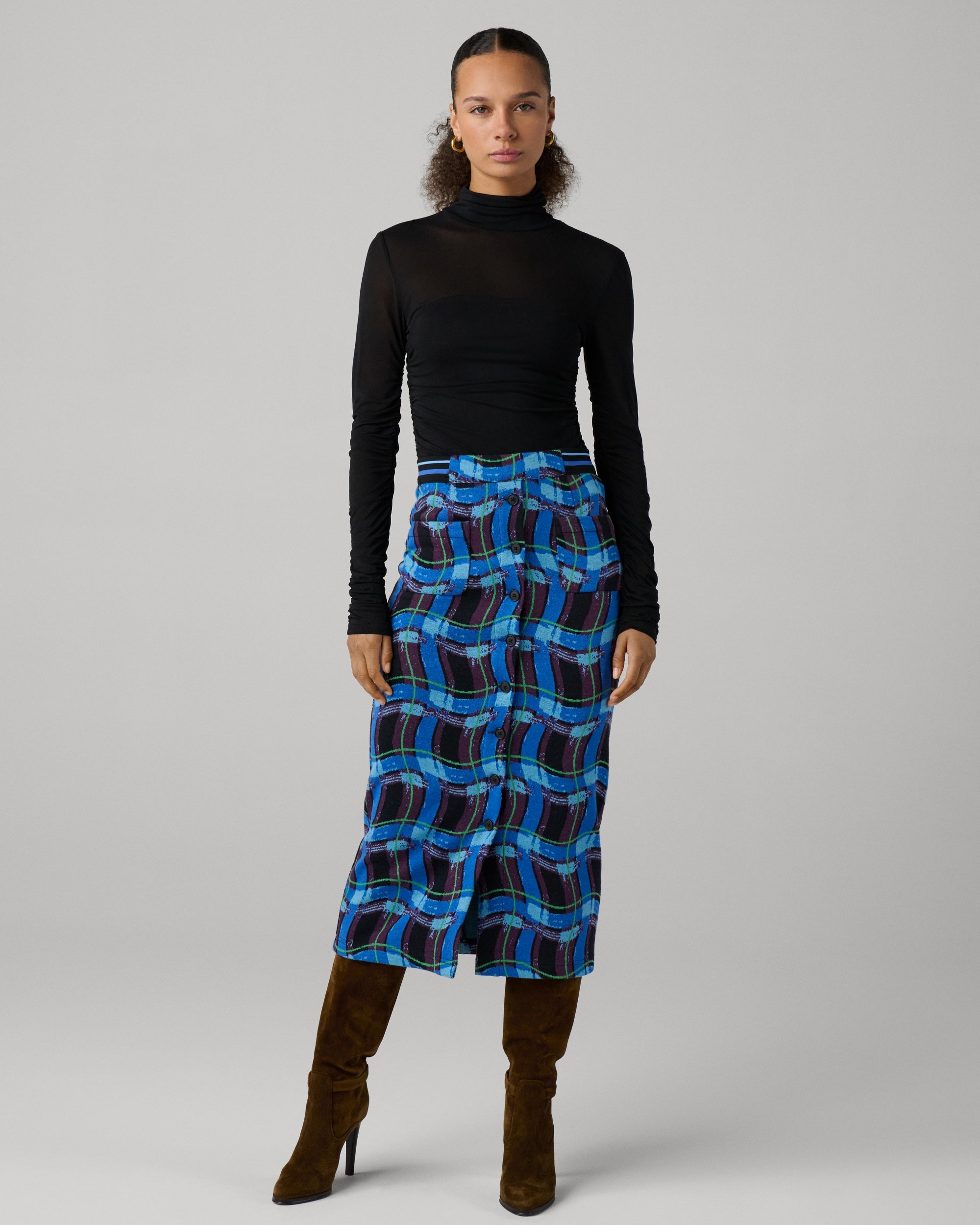 A slim-fit long skirt that hugs the body curves. Made of jacquard knitted fabric, it is soft in texture, fits the body shape and allows free movement, combining comfort with a stylish look.