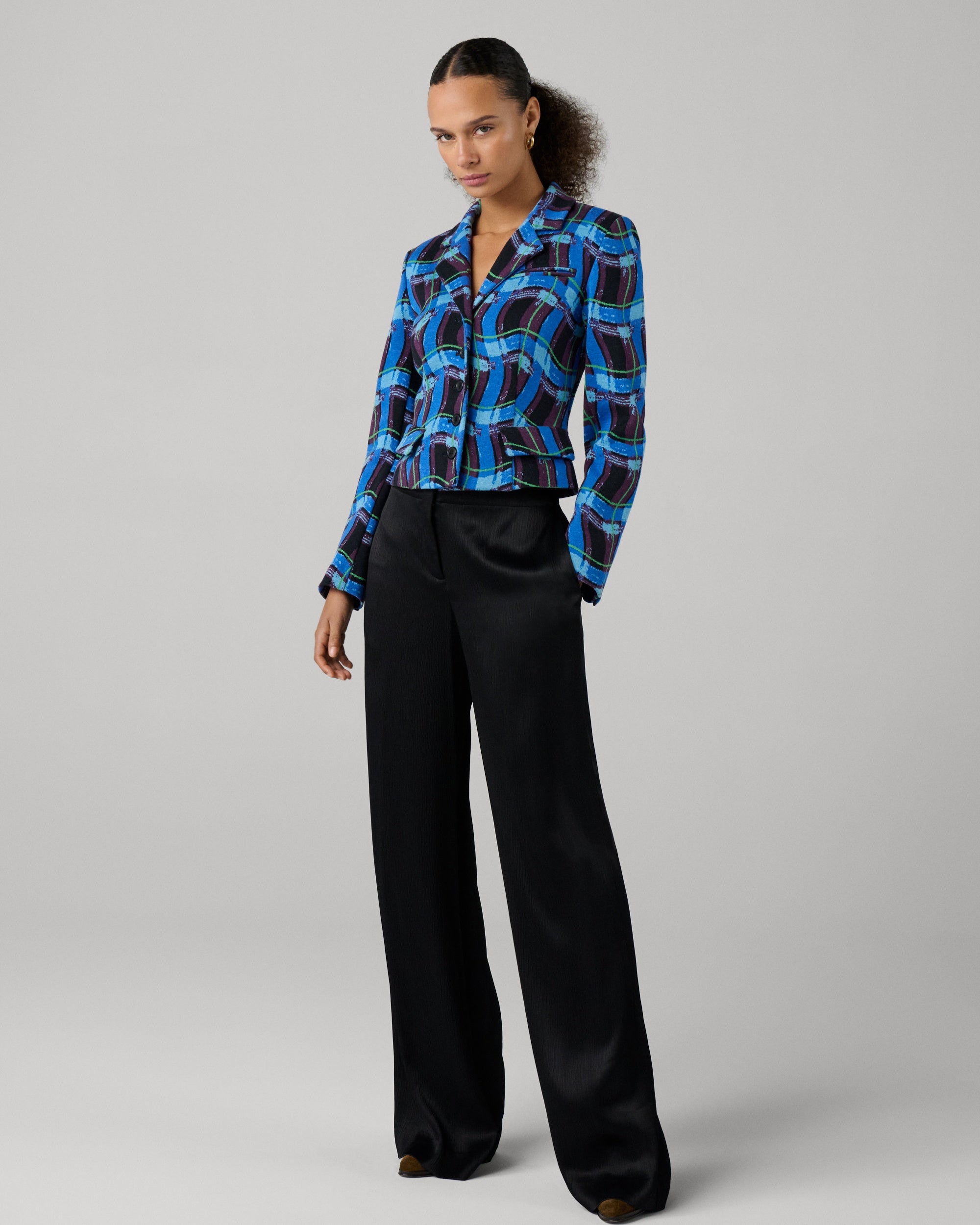 A blazer-style short top with a slim fit that outlines the body lines. Made of jacquard knitted fabric, it feels soft and elastic, fits the body curves, and offers both comfort and a crisp, structured look.
